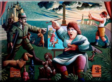 Ses images peintes, malgré leur diversité stylistique, s'apparentent à une espèce d'expressionnisme narratif.
